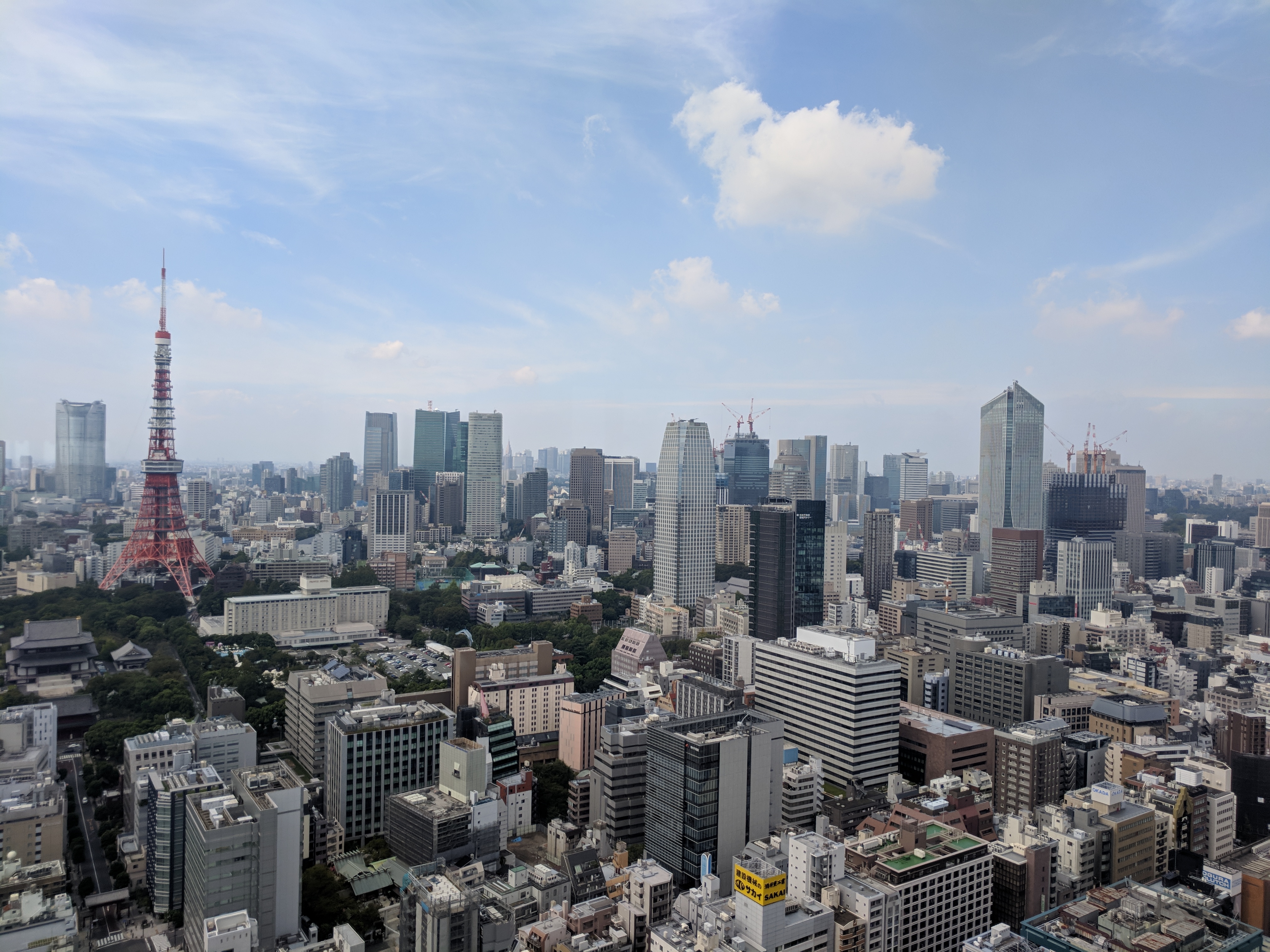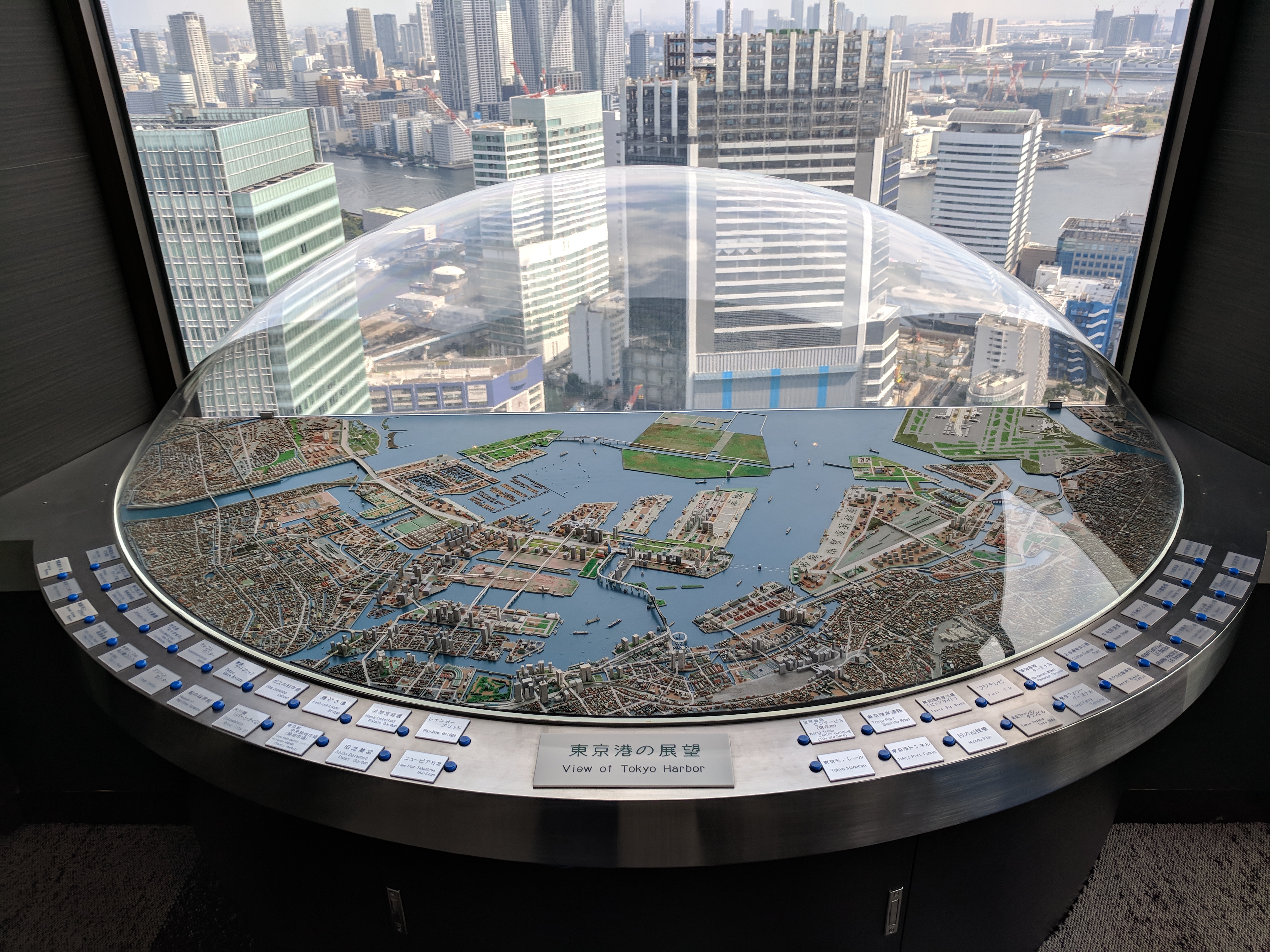 Monday, the first item on my list was to see Tokyo Tower. I took my time in the morning then took a train over to Hamamatsuchō station. As I was trying to orient myself to walk towards the tower, I found myself in front of the Tokyo World Trade Center, which advertised an observation level. I decided, what the heck, let’s go see what Tokyo looks like from above.