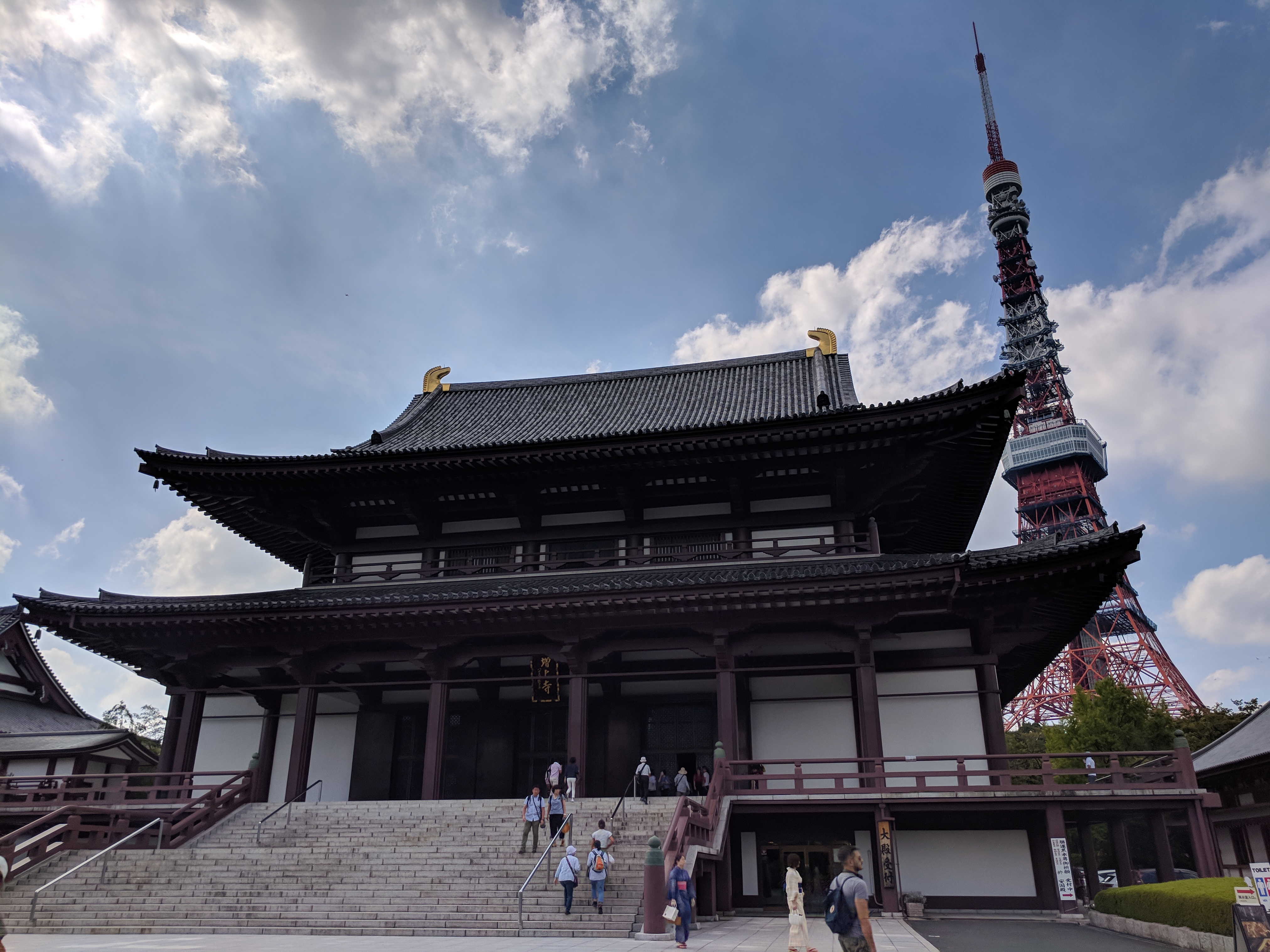 After having my fun taking pictures from the Trade Center, I started my short trek over to the tower itself. The walk involved going through a small park that held the Zojoji Temple, which held some pretty awesome pictures of Tokyo Tower as well.