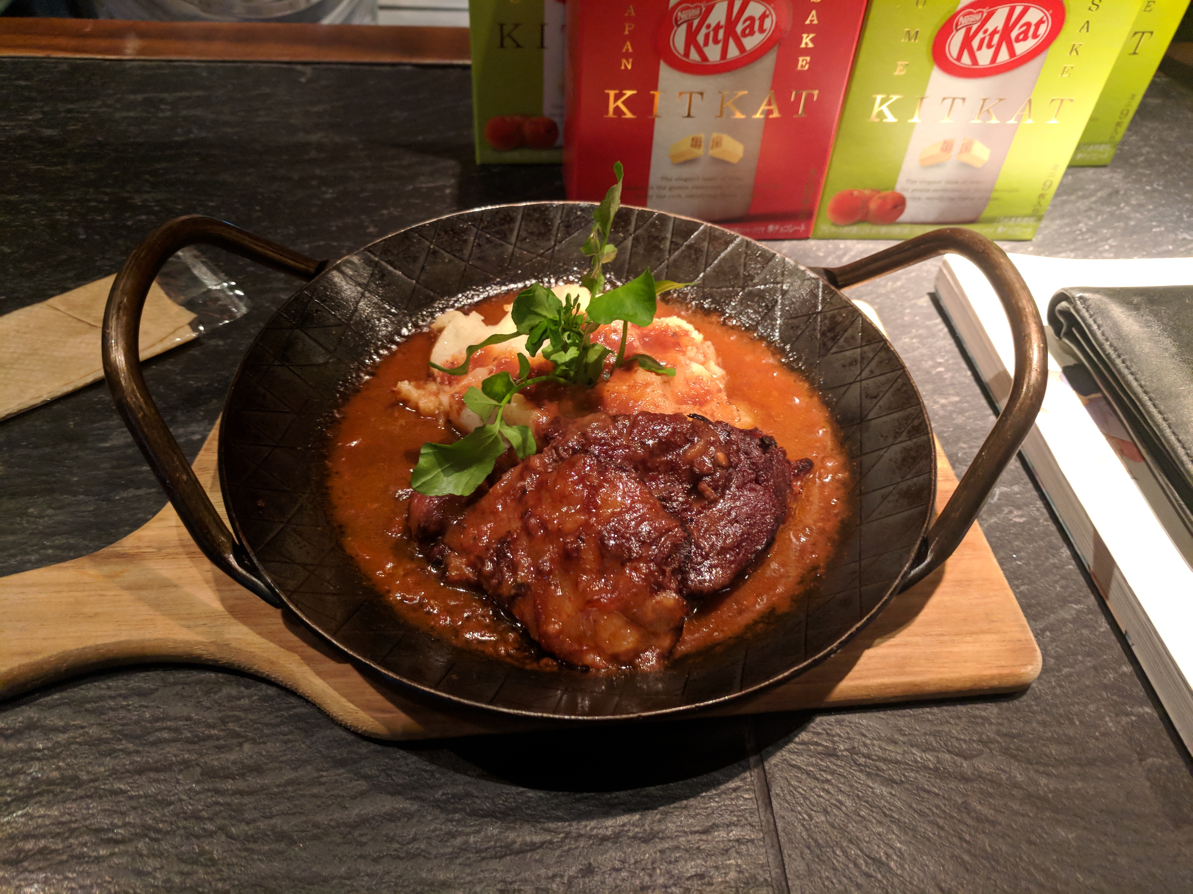 After Akihabara, I headed back to the hostel where I got I think 20% off a meal at their restaurant for being a customer there. Who know cow cheek could be tasty? (Also, interesting KitKat flavors in the background, sake!)